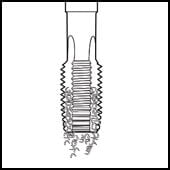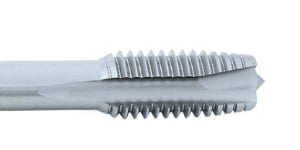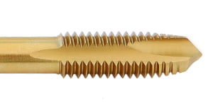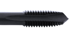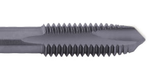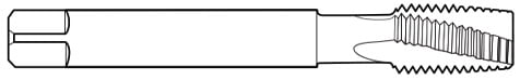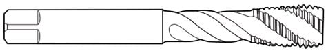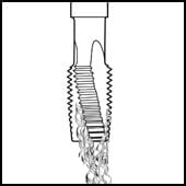 På grunn av spiralformen tvinges spon foran tappen. Gunstig ved gjenging i harde materialer. |