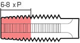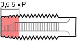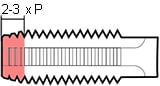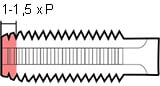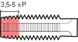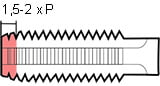 Kort avfasing gjenger helt til bunnen av hullet. Lange avfasinger reduserer belastningen på gjengetappen og anbefales for materialer med høy skjærestyrke.