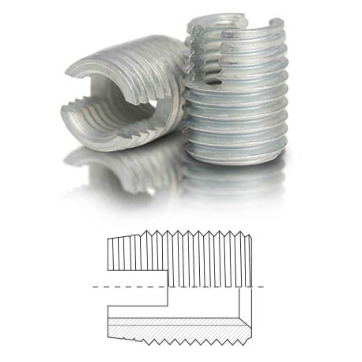 BaerFix gjengeinnsatser har en konisk styring med skjærespor på den metriske utvendige gjengen.