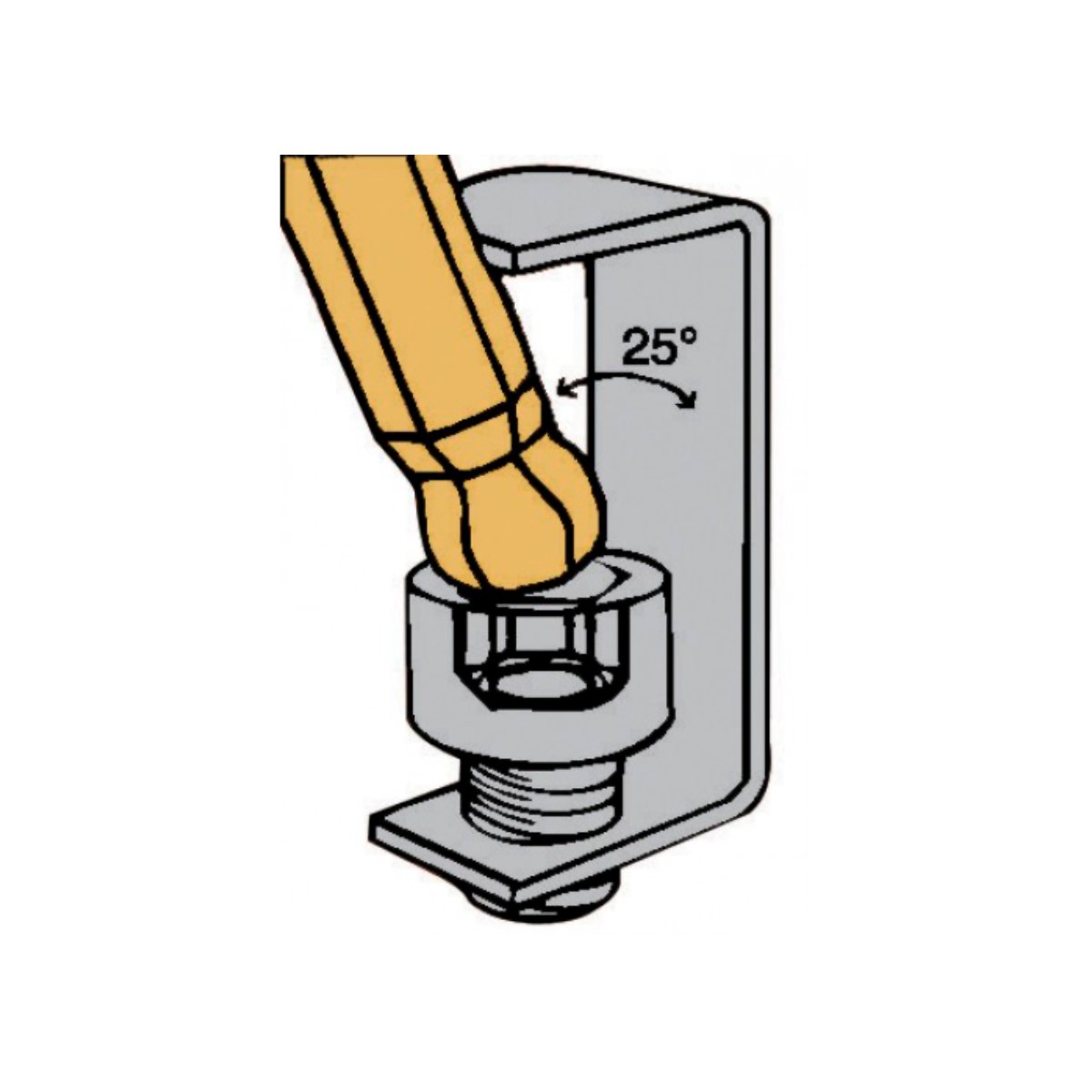 Med kuleform kan nøkkelen vinkles 25°, noe som gjør det enklere å komme til på trange steder.