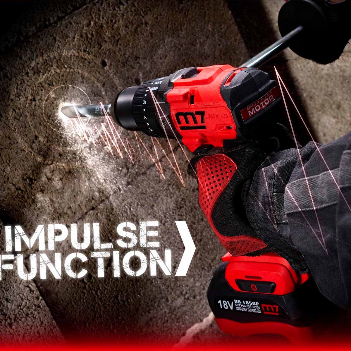 Mighty Seven borskrutrekker m/impuls er en kraftig og effektiv profesjonell borskrutrekker, som er drevet av en børsteløs 18V/5.0Ah motor.