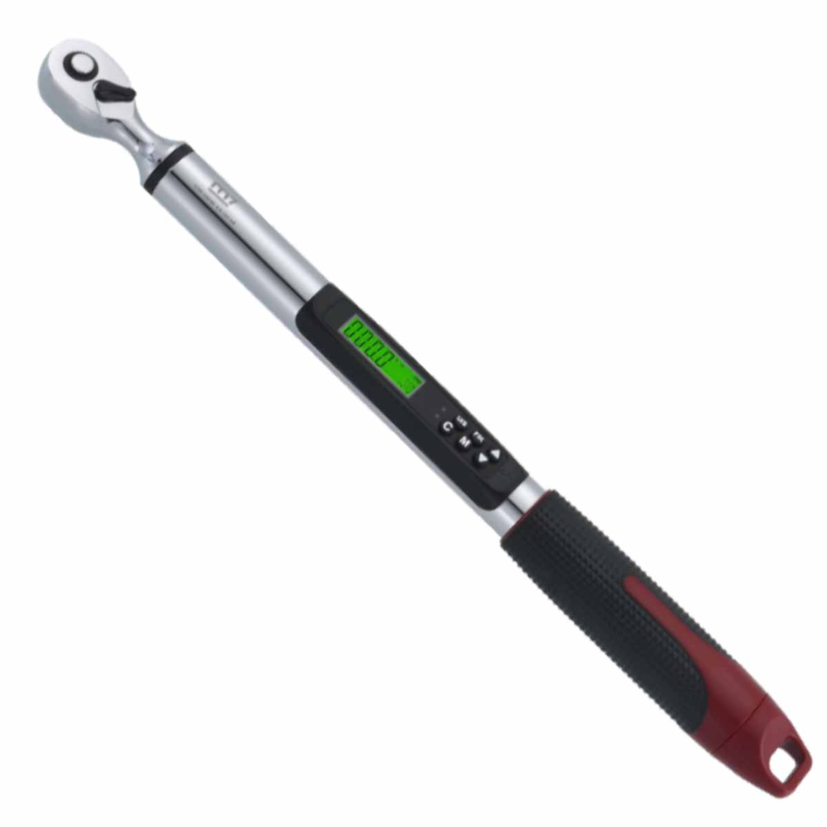 Digital momentnøkkel med 72 tenner, enkel innstilling og tydelig indikering gjennom LED-dioder. Nøyaktighet: ±2,5 % (medurs), ± 1,5 % (moturs). Arbeidstemperatur –10 °C – +60 °C Måleenhet: Nm, ft.lb, in.lb, kg, cm. Drives med 2 x AA-batterier. Leveres i metallboks med skuminnlegg.