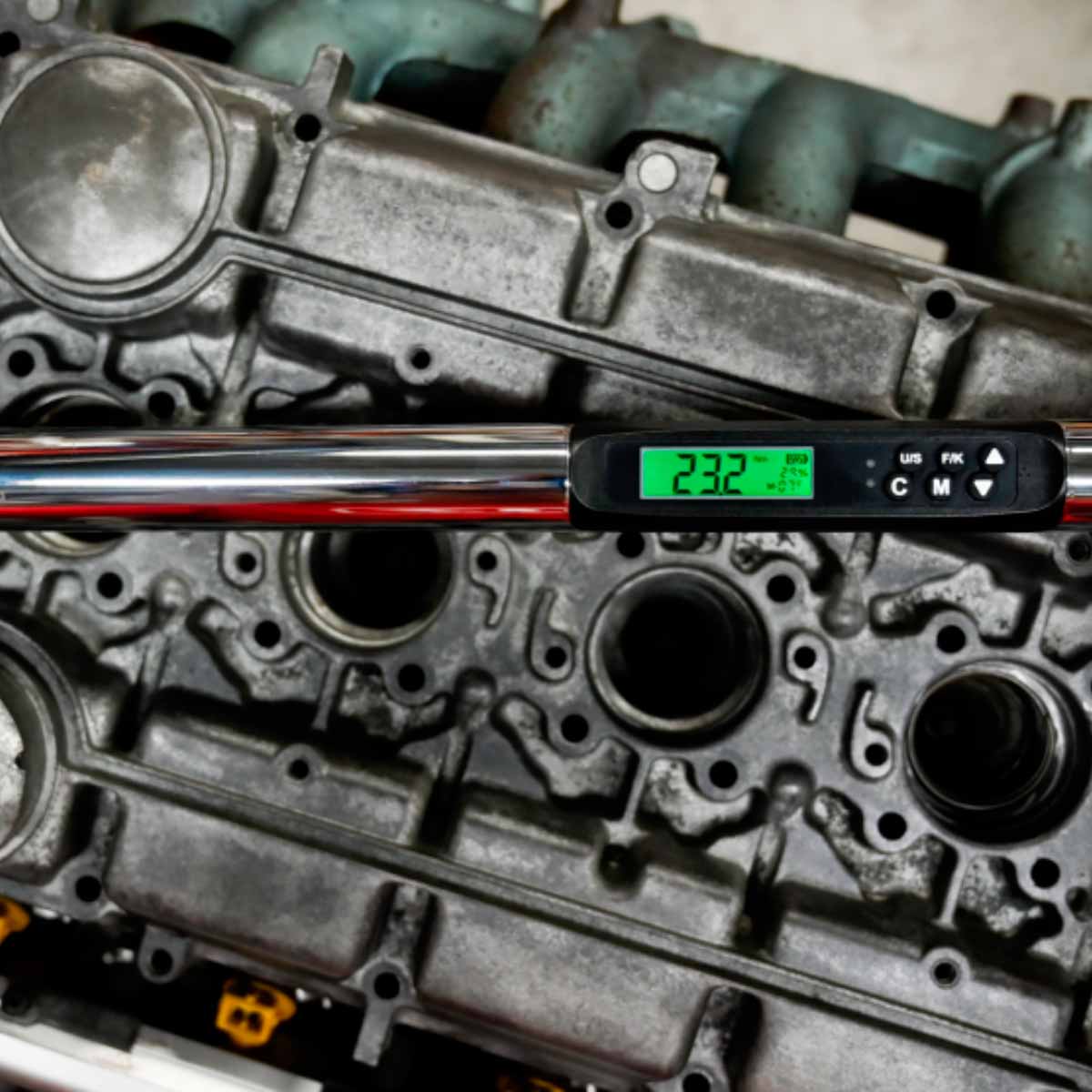 Mighty-Seven digital Momentnøkkel med 72 tenner, enkel innstilling og tydelig indikering gjennom LED-dioder.