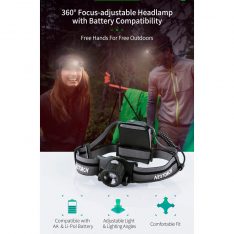 Hodelykt med zoom, som i utganspunktet er oppladbar, men det kan også brukes 3 stk AA batteri i den. Meget kjekt om du går tom for strøm når det ikke er lademuligheter. Den lave vekten, delt hodebånd og vektfordelingen gjør at denne lykten er meget komfortabel og bruke over lang tid.