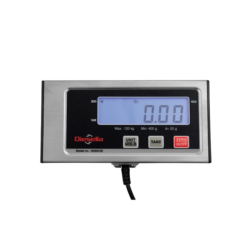 Rustfri veieplate 305×305 mm og LCD display i rustfritt stålhus med særskilt holder i ABS plast.