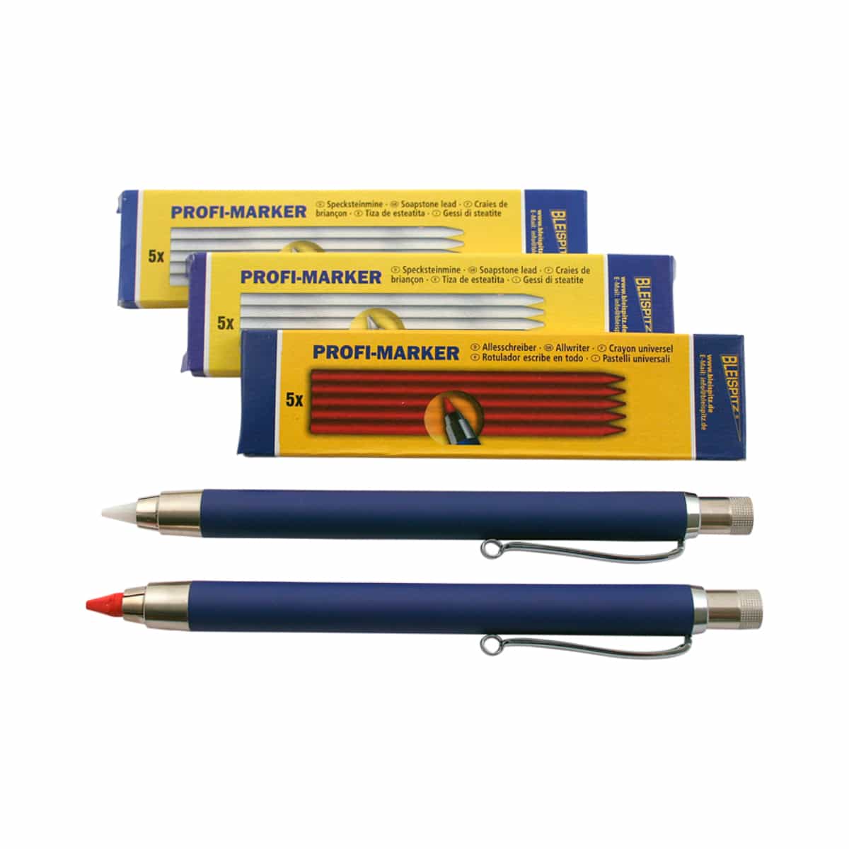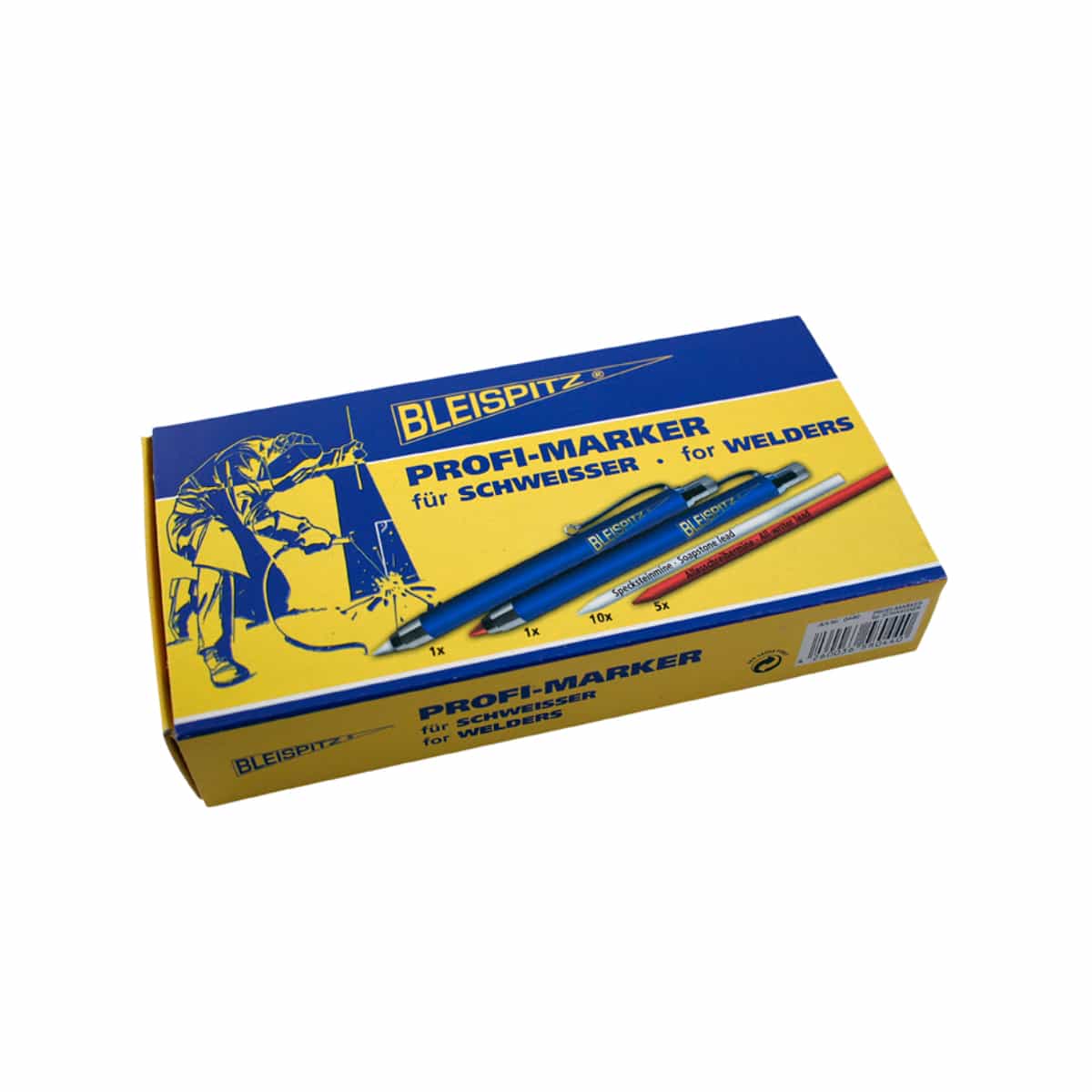 Profesjonelt merkesett spesielt utviklet for stålindustri. Leveres med røde stifter til alminnelig merking og «såpesteinstifter» til merking ved sveisearbeid.