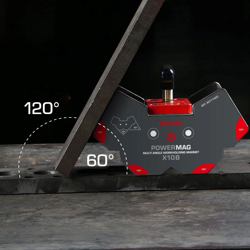 | Powermag X10B | 490N | 148 x 148 x 38 mm | 45°, 60°, 75°, 90°, 105°, 120°, 135° |