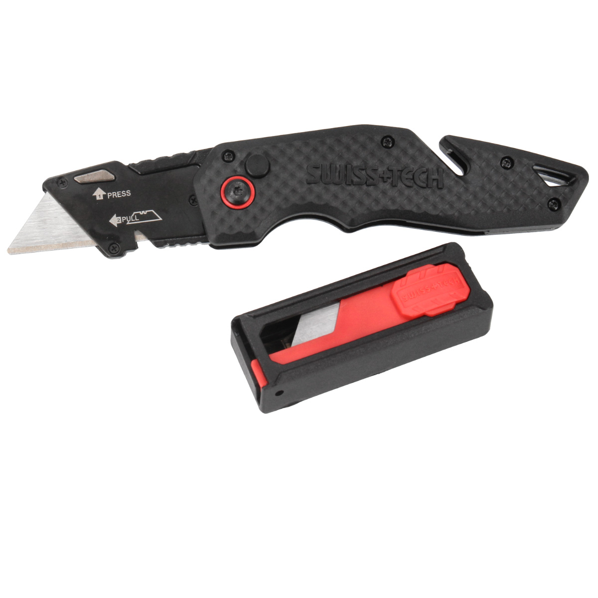 Kniven lukkes enkelt med et trykk på siden av kniven. Derfor kan du oppbevare kniven trygt – uansett om den ligger i verktøykassen eller i lommen.