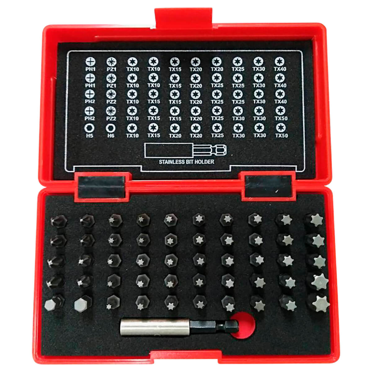 50 stk bits og en bitsholder med låsering og magnet.