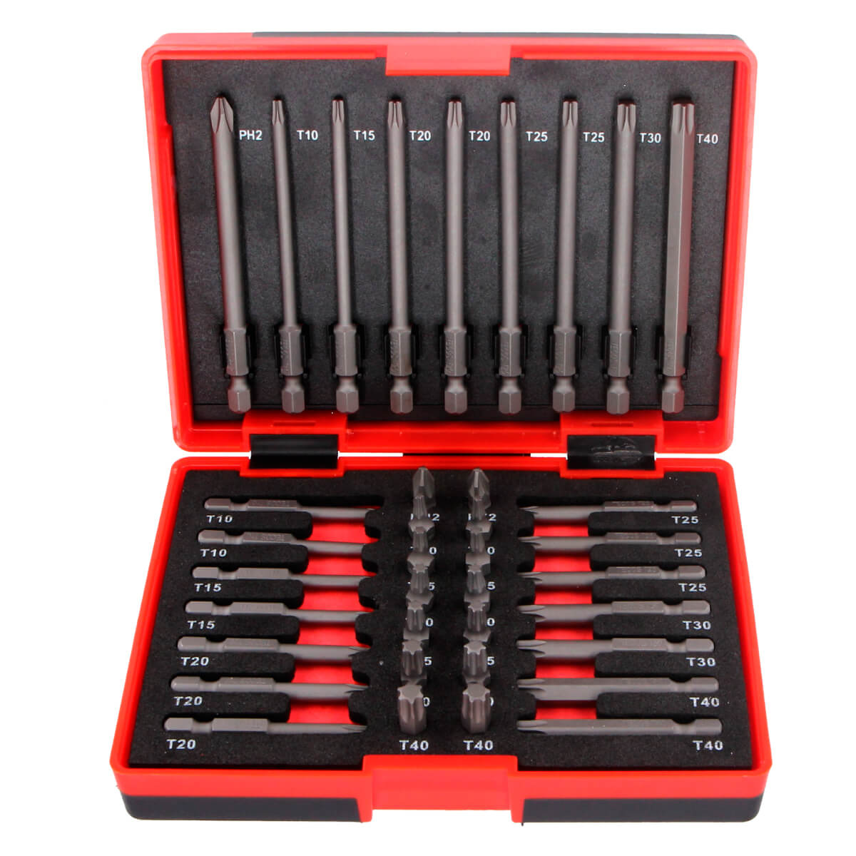 Bits 50 mm: Torx T10,T10,T15,T15,T20,T20,T20,T25,T25,T25,T30,T30,T40,T40