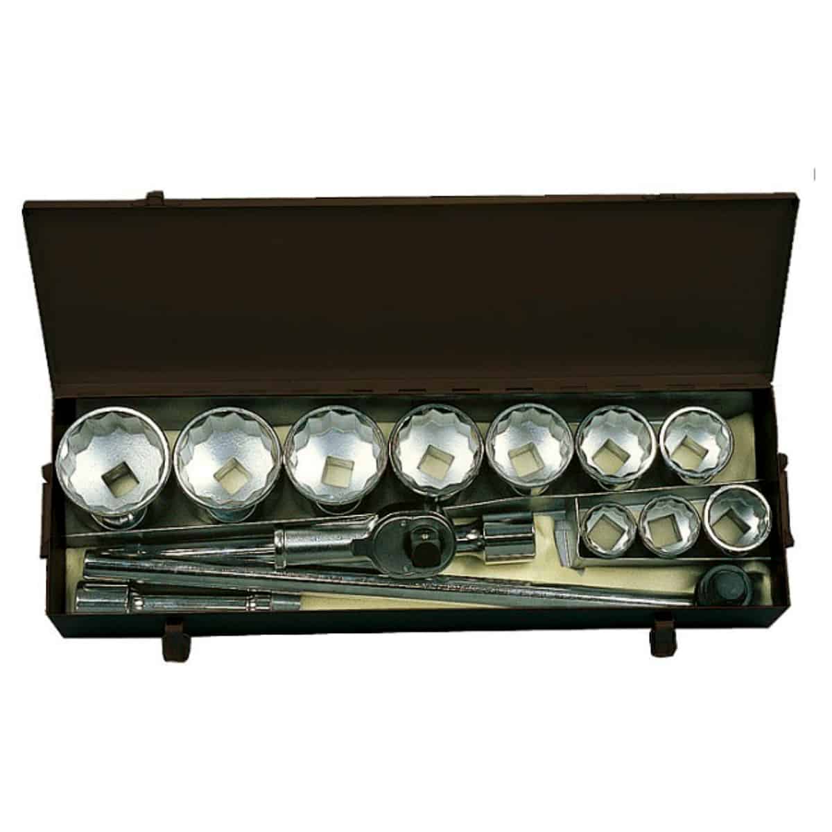 Innhold: 10 stk piper : 36, 41, 46, 50, 55, 60, 65, 70, 75, 80 mm Skralle lengde 650mm Forlenger 200 mm og 400 mm T-håndtak 550 mm