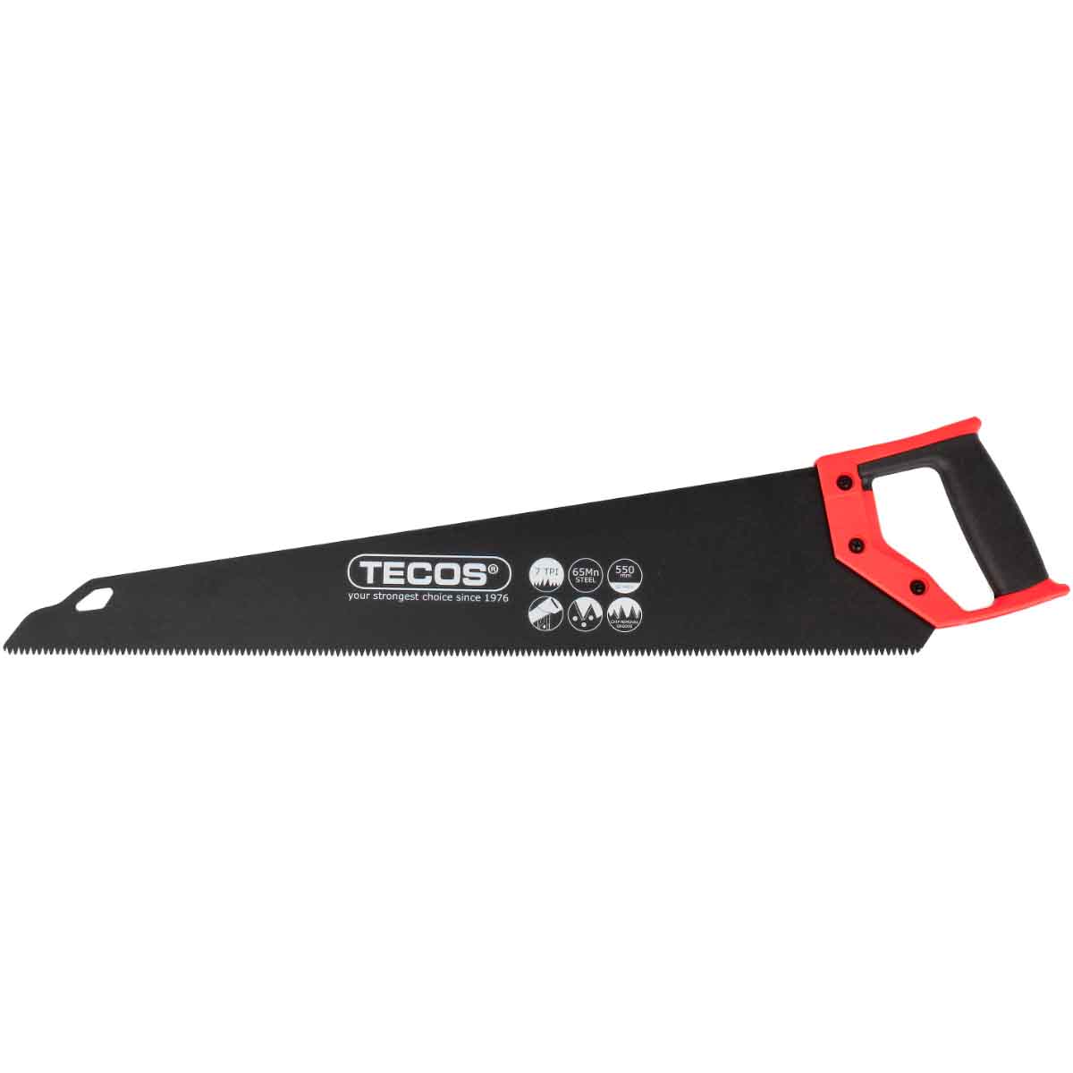 Teflon belegget forminsker friksjonen og gir en smidigere arbeidsprosess, likeledes forhindrer «coatingen» at sagen setter seg fast. Håndtaket er forsterket med en slagfast plastikk og grepsområdet er belagt med TPR gummi, som gir et sikkert og behagelig arbeidsmiljø.