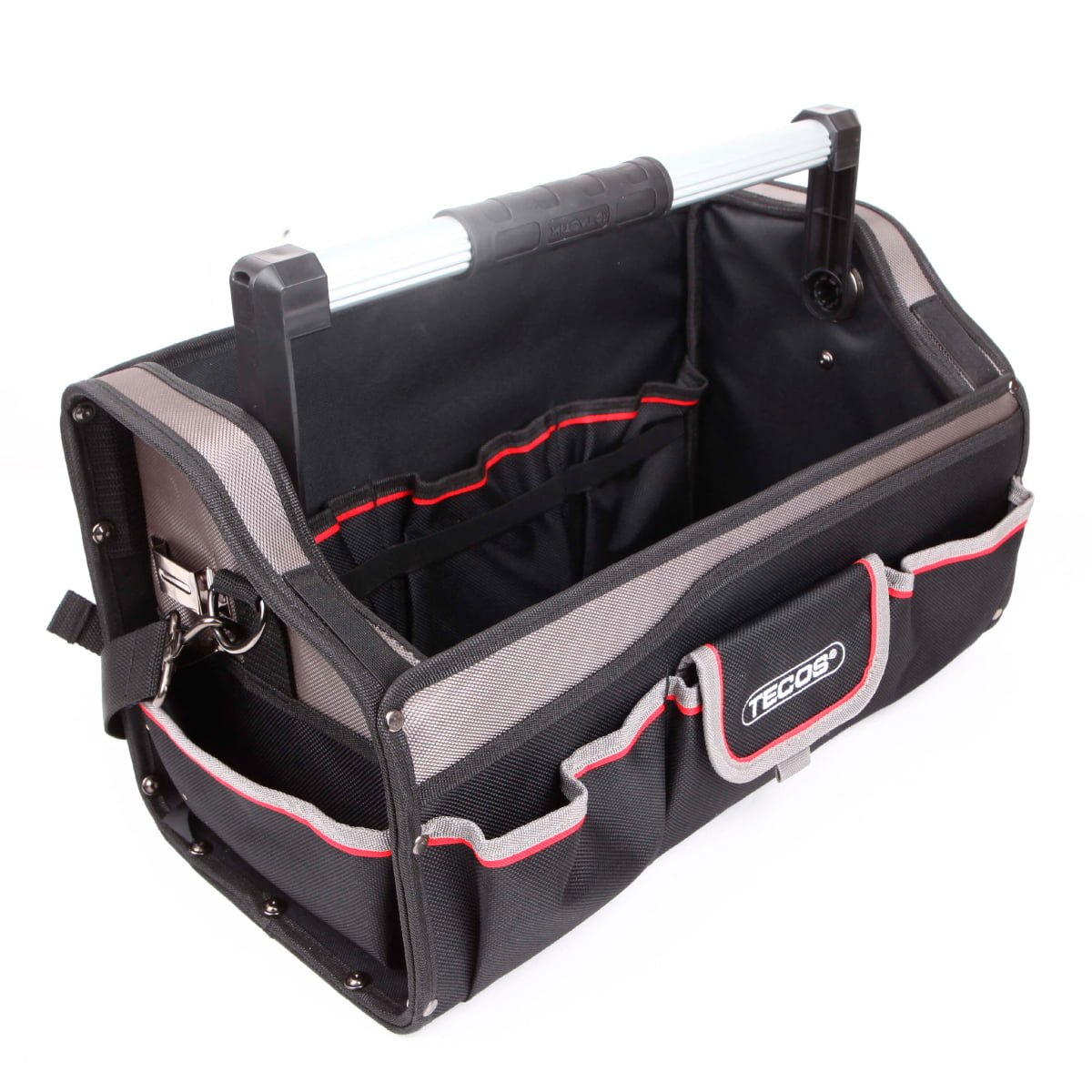 Tecos VVS verktøyveske er fremstilt i ekstra kraftig sydd polyester med innvendig fiberforsterking, som gjør den slitesterk og egnet til harde arbeidsoppgaver.