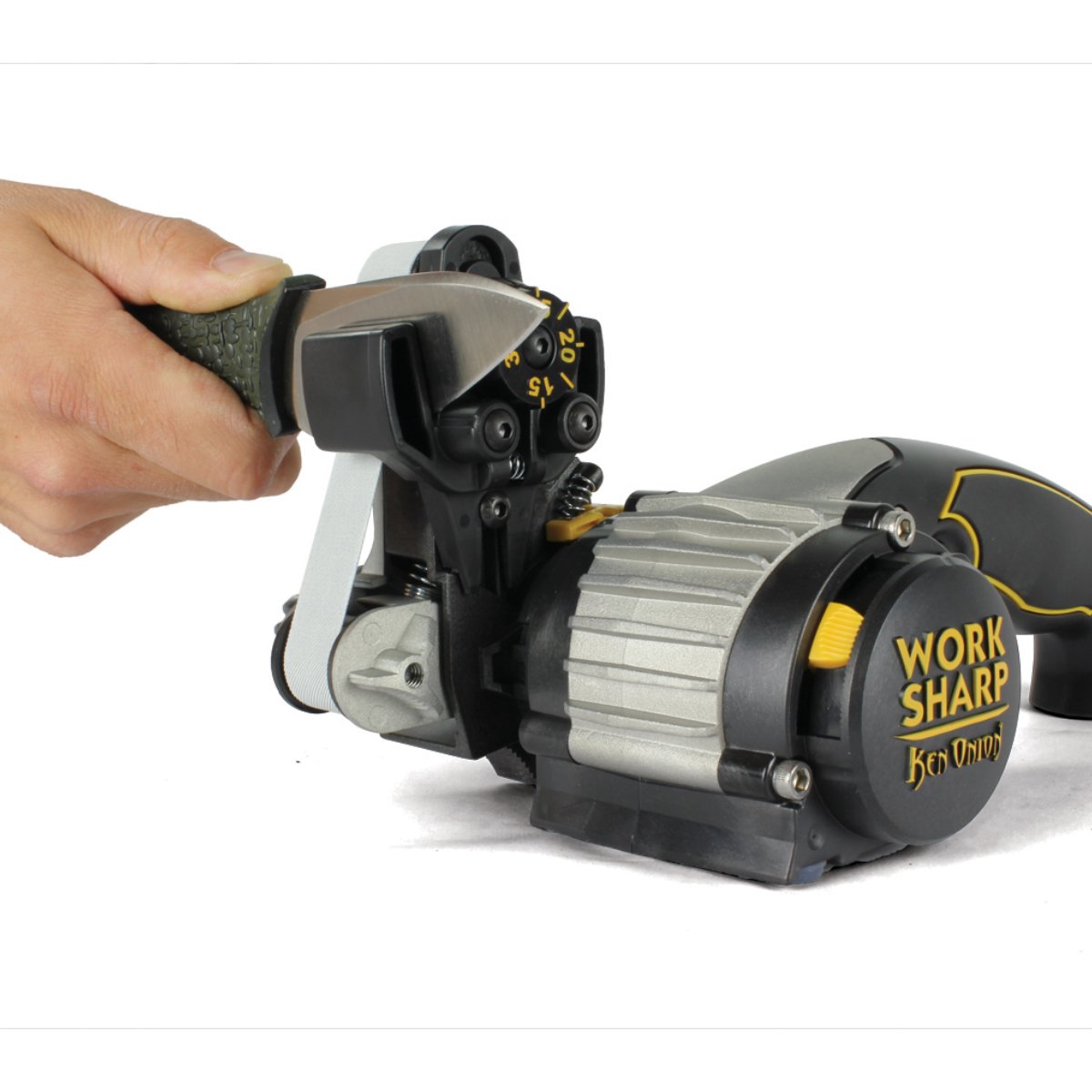 WorkSharp «Ken Onion Edition» er laget for å slipe alle typer kniver. Med justerbar «eggvinkel», justerbar hastighet og unik slipebåndteknologi sliper den lommekniver, jaktkniver, serraterte kniver, kjøkkenkniver, bukåpnere og alle andre kniver.