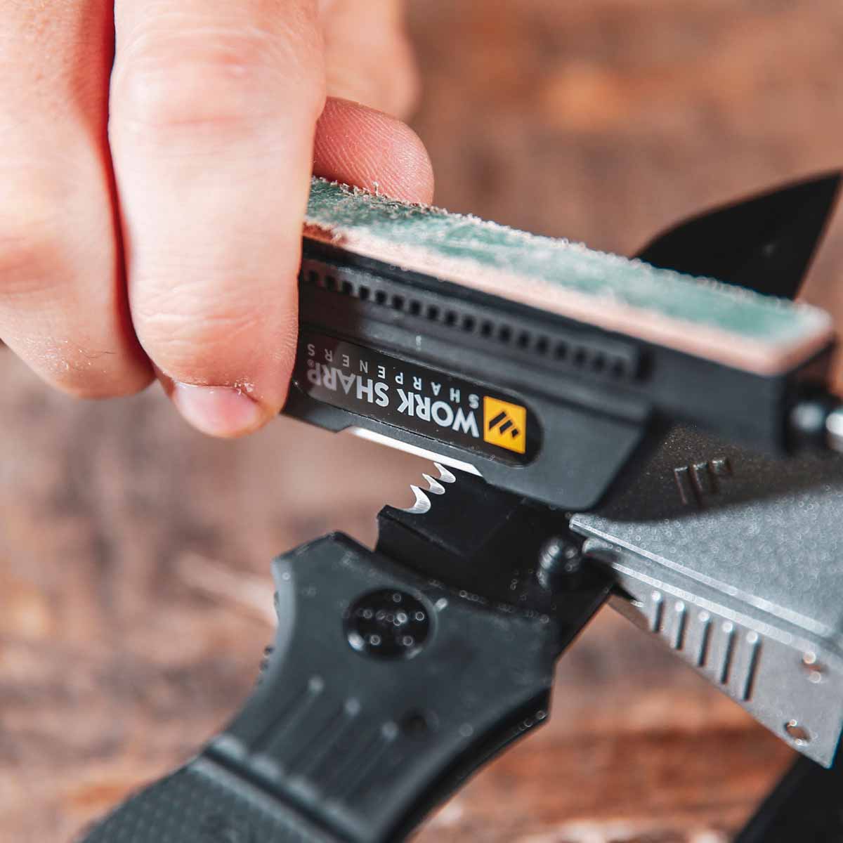 De grove dimantbrynene setter raskt opp en ny egg, og de fine honer eggen så den blir «barberblad» skarp.