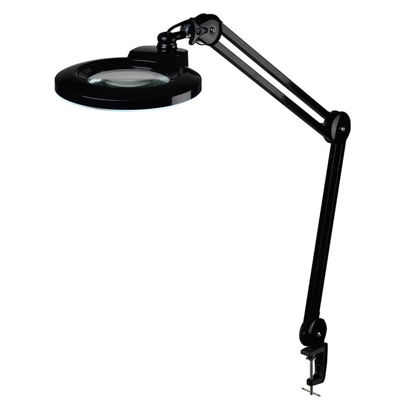 Leveres med Ø127 mm 3D linse pre-installert (1,75X forstørrelse) samt en ekstra 5D linse (2,25X forstørrelse) som kan skiftes ut etter arbeidsoppgave eller behov. Leveres med robust bordklemme og 1,5 M ledning med EU Type F Schuko stik.